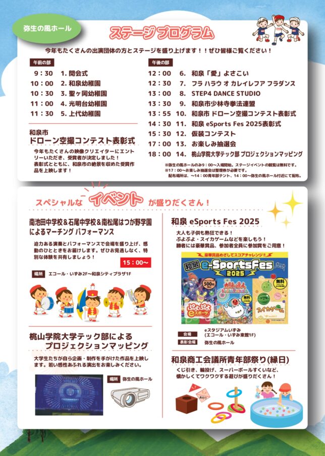 弥生の風ホールでは各種団体の演技披露やお子さんが喜ぶようなコンテンツがたくさん開催されます。