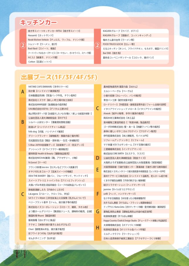 和泉シティプラザでは、商品PRから販売、体験など幅広いジャンルの出店ブースが盛りだくさん!もちろんキッチンカーの出店もございます!